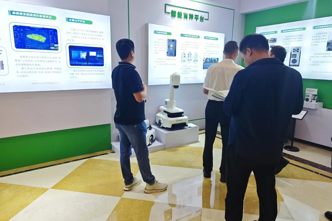 未农智能受邀参与本次推进会,会上展示的设施智能表型检测机器人以及设施巡检机器人引起与会人士的关注和热议。这也是本公司最新产品,设施巡检机器人在展览中的首次亮相。